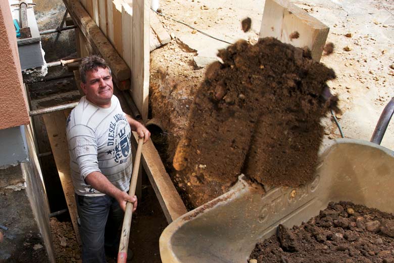 Sprosse für Sprosse. Wenn die Anlage sehr hoch oder sehr tief ist, geht das ganz schön in Arme und Beine.