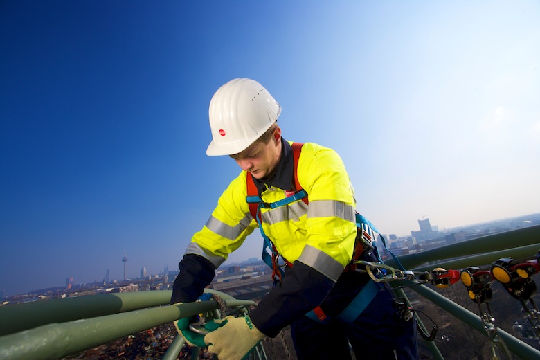 Die Verantwortlichen vor Ort sind fast immer bereit, solche Extravaganzen mitzumachen und beschaffen entsprechendes Gerät oder Zugänge. Allerdings nur, wenn sie auch das Zutrauen haben, dass die Fotografen ihre Mission unfallfrei überstehen. Sich an Sicherheitsbestimmungen zu halten, ist gerade in der Industrie essentiell. Daher tragen wir immer unaufgefordert Sicherheitsschuhe und Helme, wenn eine entsprechende Tragepflicht besteht. In unseren Fototaschen liegen auch Gehörschutz und Sicherheitshandschuhe bereit, je nachdem, wo wir uns bewegen. Und für Arbeiten in der chemischen Industrie verfügen wir  über Arbeitsanzüge aus schwer entflammbaren Stoffen. Beim Arbeiten in der Höhe sichern wir uns mit einem professionellen Gurtsystem.
